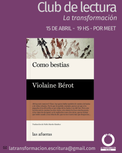 Desde La Transformación, coordino Talleres Literarios y Clubes de lectura orientados a la escritura creativa y al intercambio entre escritoras de todos los niveles. También te acompaño en el proceso de desarrollo y corrección de tus cuentos o novelas, respetando tu voz como autora, y ofrezco servicios de redacción y edición de textos literarios y periodísticos.